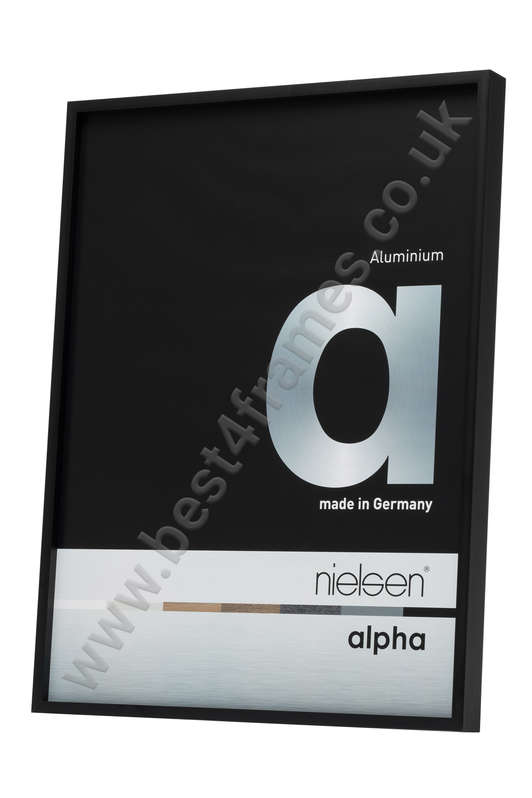Nielsen Alpha Matt Black picture frame nielsen alpha anodised matt black picture frame straight on nielsen alpha matt black picture frame corner shot nielsen alpha anodised matt black picture frame wrapped Nielsen alpha picture frame dimensions nielsen alpha anodised matt black picture frame back of the frame